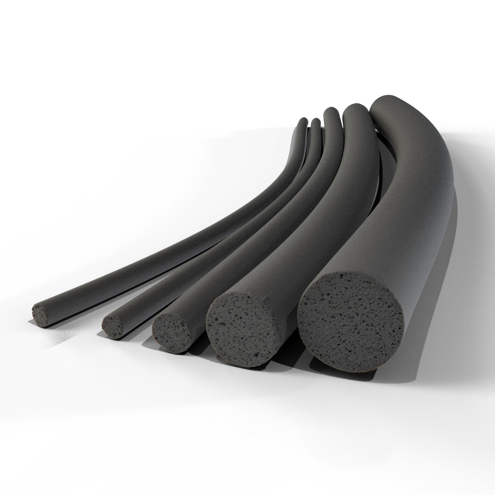 Размер пор в материале может изменяться от — 0,4 (микропористые резины) до 0,2 — 0,3 мм. Гернитовый шнур характеризуются низкой плотностью 0,06 — 0,80 г/см3, высоким сопротивлением сжатию, звуко — теплоизоляционными свойствами коэффициент теплопроводности 0,039—0,044 вт/м.к, способностью гасить вибрации. Уплотнительные прокладки из пористой резины нашли широкое применение для сборных панелей в строительстве, сидений для автомобилей и самолётов, матрацы, теплоизоляционные подслои синтетических покрытий для полов, подошвенные материалы и др.